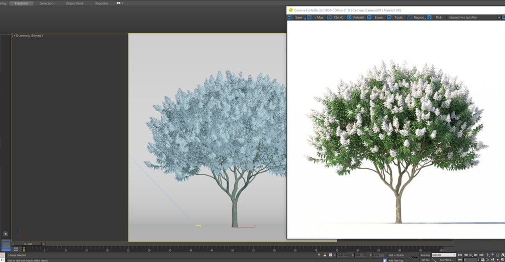 - 3ds Max models are grouped for easy selection, and objects are logically named for ease of scene management.
